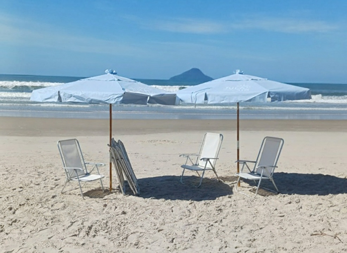2 guarda-sóis grandes/gigantes 6 cadeiras (sendo 4 espreguiçadeiras)